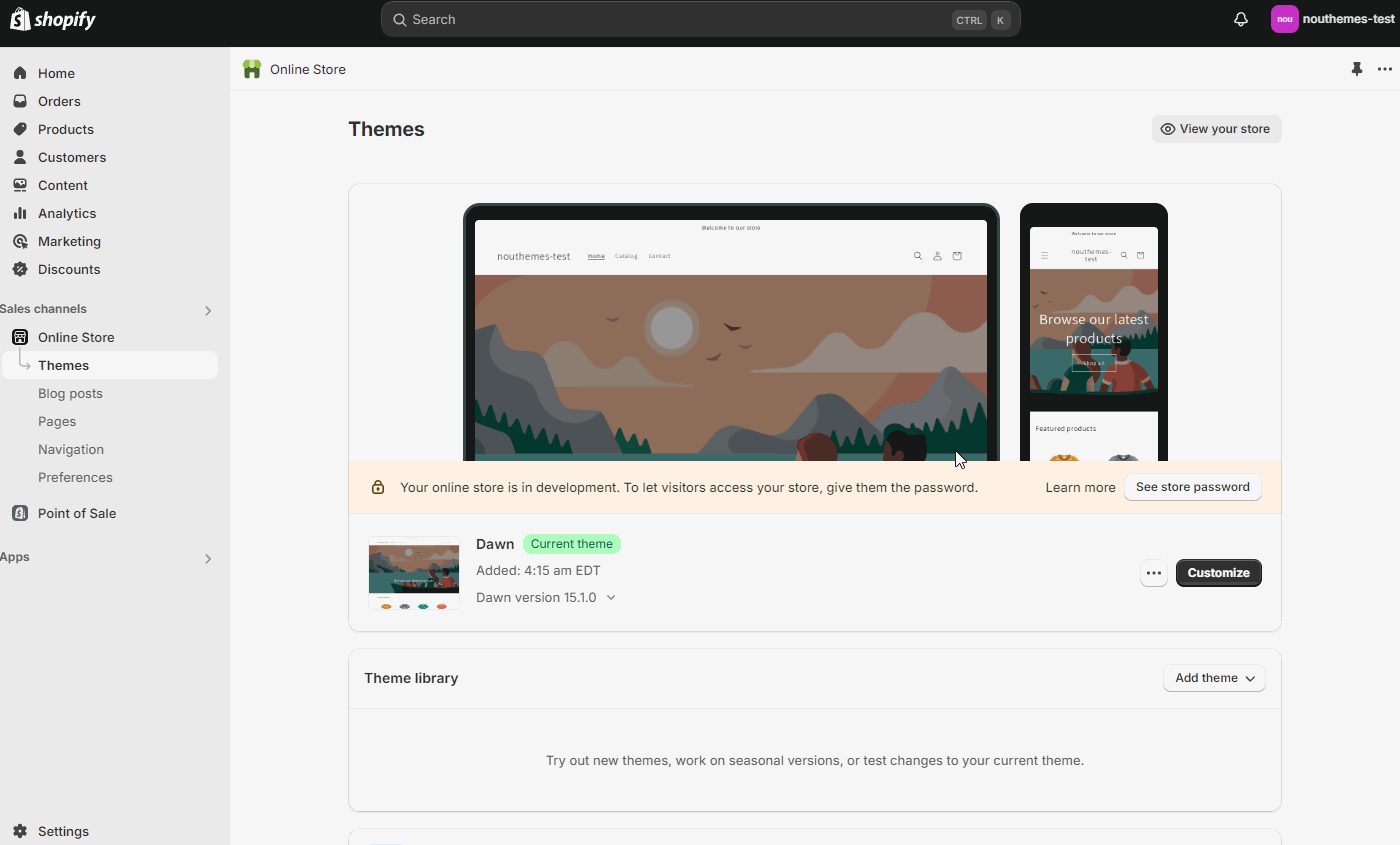1. From your Shopify admin, go to Online Store -> Themes.