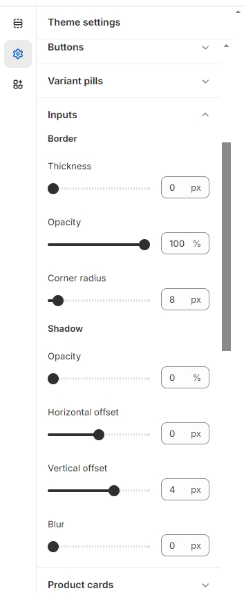 Click Theme Settings -> Inputs.