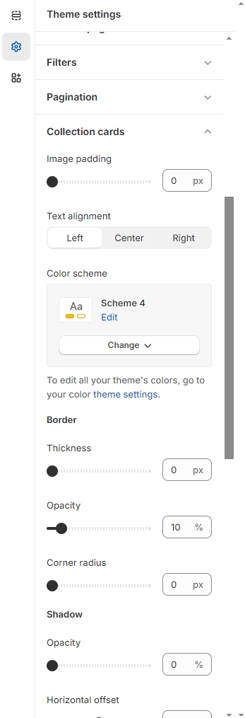 Click Theme Settings -> Collection cards.
