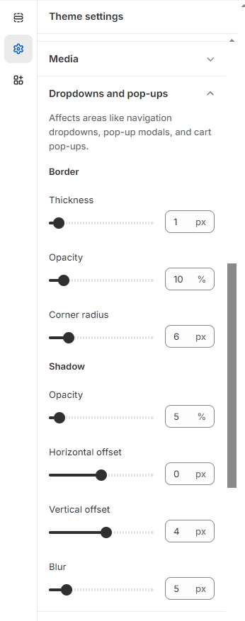 Click Theme Settings -> Dropdowns and pop-ups.