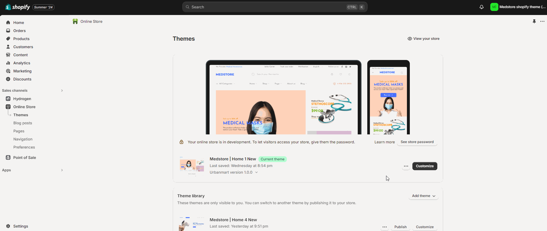 1. From your Shopify admin, go to **Online Store** **->** **Themes**.