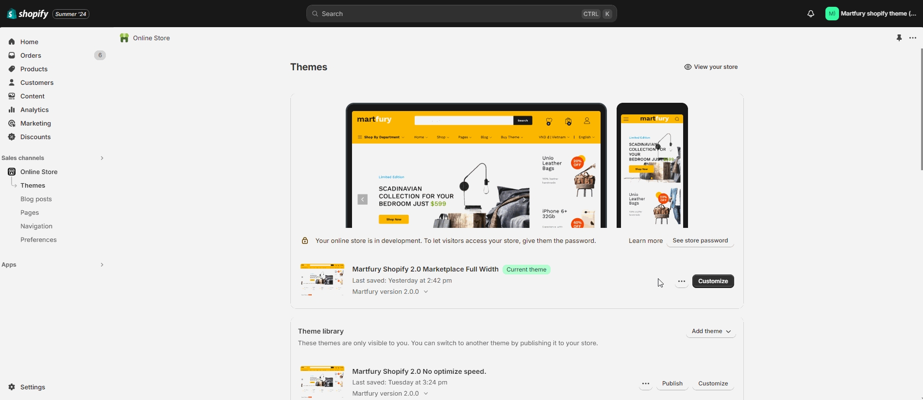 From your Shopify admin, go to Online Store -> Themes.